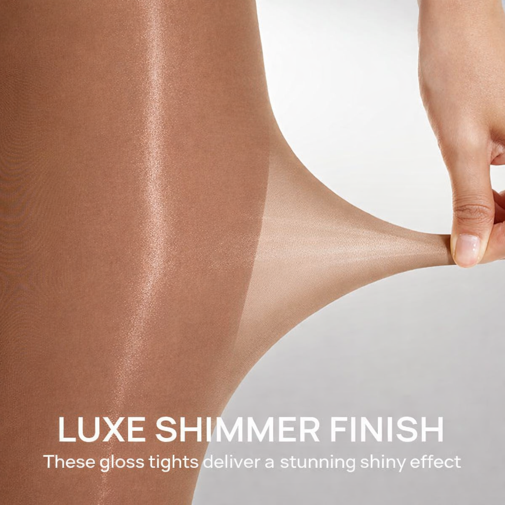 GlossSkin tights are designed to enhance—not mask—your legs. The finish is a soft, luxe glow that looks smooth and natural in real life and on camera.